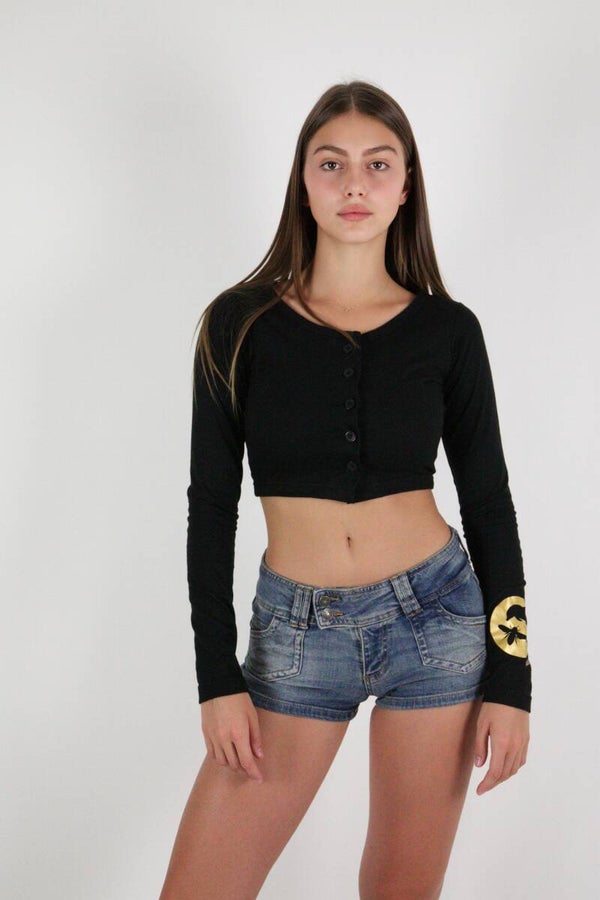 Un capo essenziale con un twist deciso. Questo crop top a manica lunga è realizzato in cotone elasticizzato, morbido sulla pelle e perfetto per seguire ogni movimento. Il dettaglio dei bottoni frontali aggiunge un tocco di personalità e versatilità: puoi portarlo aperto, chiuso o a metà, a seconda del mood.