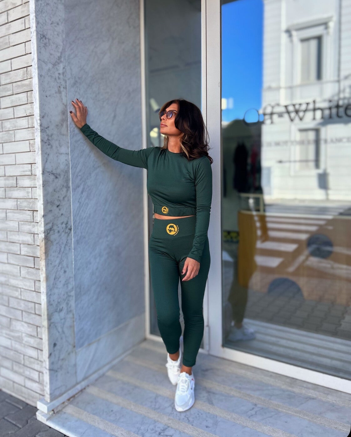 - Leggings a vita alta con fascia elasticizzata che scolpisce la silhouette senza costringere.